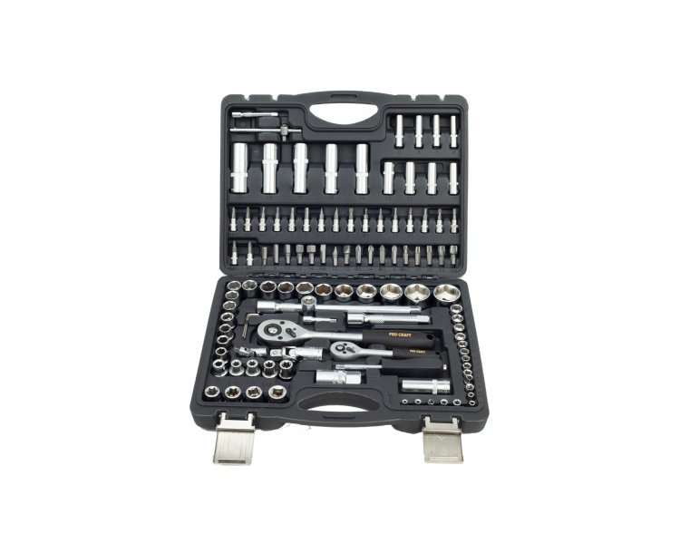 Součástí balení: 8x 1/4" hlavice nástrčné prodloužené, 2x1/4" a 2x 1/2» prodlužovací nástavec, 1/4" a 1/2" univerzální kloub, 1/4" a 1/2" ráčna, 5x1/4" a 8x1/2" hlavice nástrčné torx, 1/4" šroubovák, 1/4